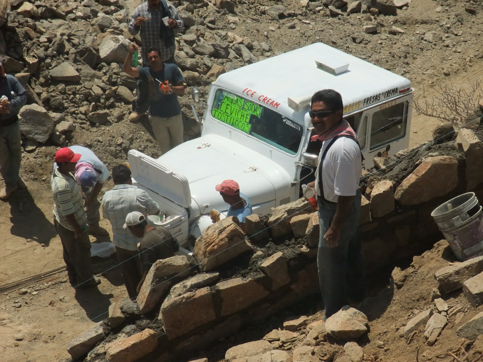 Barbara and I are in Guadalajara trying to figure out what we should purchase from an overwhelming number of options! It is amazing here. Fabulous artisans, great stores, nice, English speaking people. Will write more on our time here later but wanted to post some of the pictures I took before we left. The workers have started retaining walls for the path up from the parking lot. They got visited by an ice cream truck while they were working there. Amazingly he drove right up. We have delivery people fearful of the road, but the little white truck, music blaring, shoots right up the road, not a care in the world!